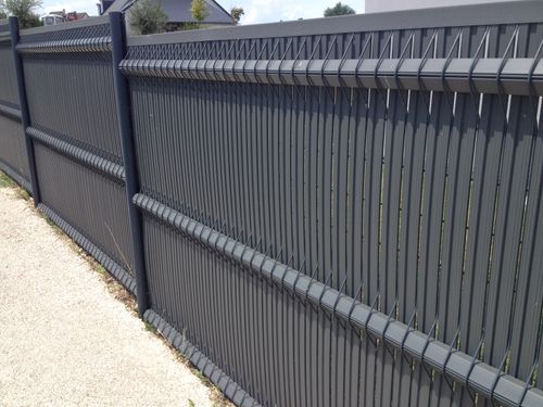 C'est la configuration "zéro défaut" pour les propriétaires d'animaux. Les treillis soudés gris anthracite assurent une rigidité structurelle parfaite. L'ajout de lames occultantes transforme votre clôture en brise-vue, apaisant les chiens réactifs aux stimuli extérieurs. Enfin, l'installation de dalles de soubassement en béton est la clé : elles empêchent les animaux "terriers" de creuser sous la clôture pour s'échapper, tout en facilitant le passage de la tondeuse ou du coupe-bordure sans risquer d'abîmer le grillage.