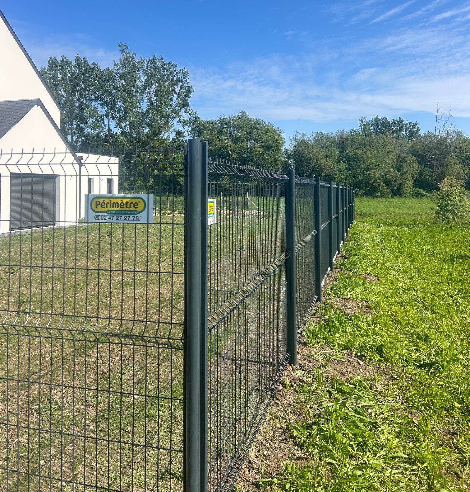 Sur ce chantier récent, nous avons installé une clôture en treillis soudés gris anthracite RAL 7016. L'objectif était de sécuriser le périmètre tout en conservant une esthétique minimaliste.
