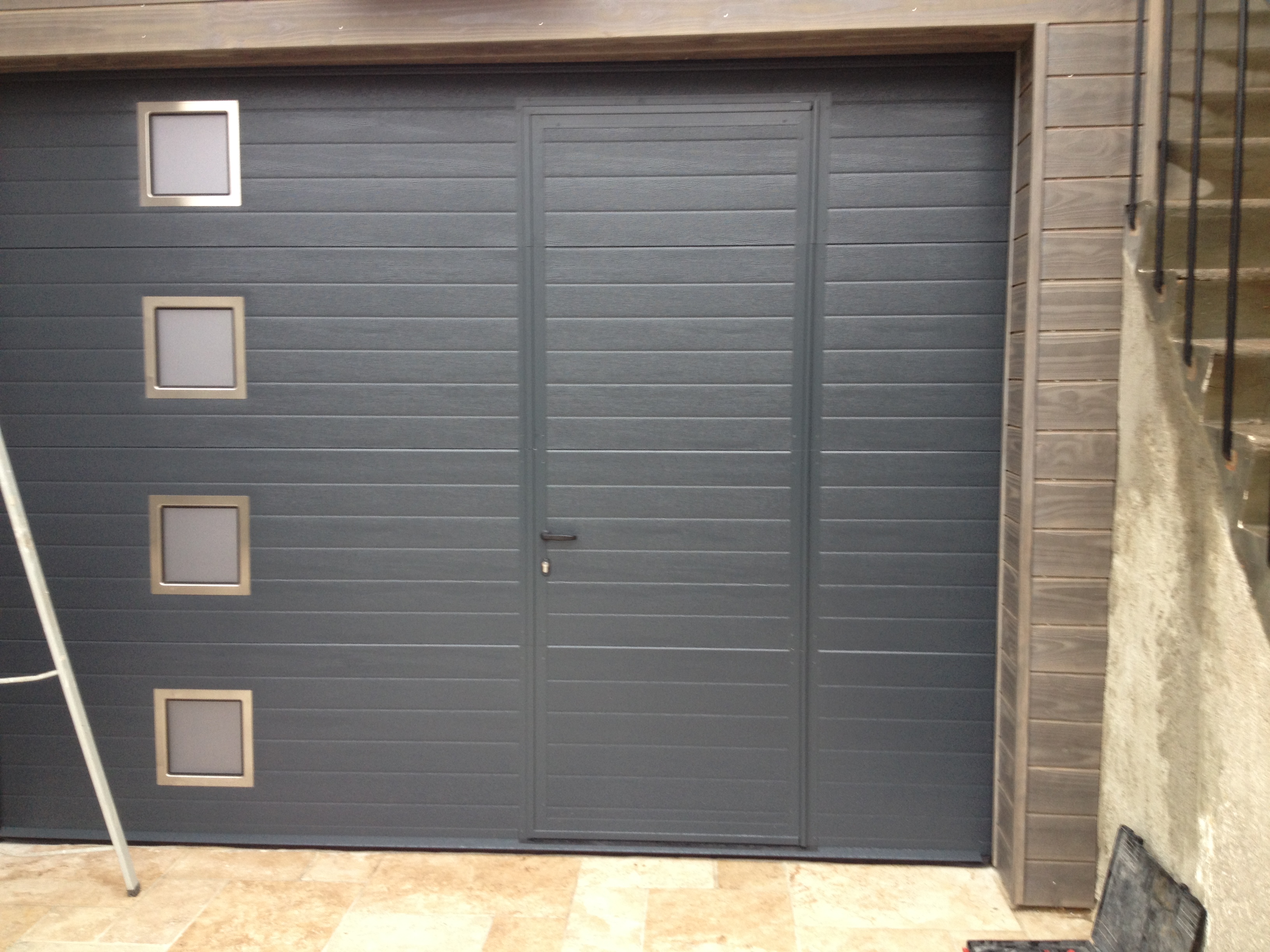 L'accès piéton permet d'entrer et sortir sans ouvrir la totalité de la porte, limitant ainsi l'entrée d'air froid l'hiver. Les hublots, quant à eux, apportent une lumière naturelle indispensable pour transformer le garage en atelier de bricolage ou en buanderie, tout en conservant des performances thermiques excellentes grâce à des cadres à rupture de pont thermique.