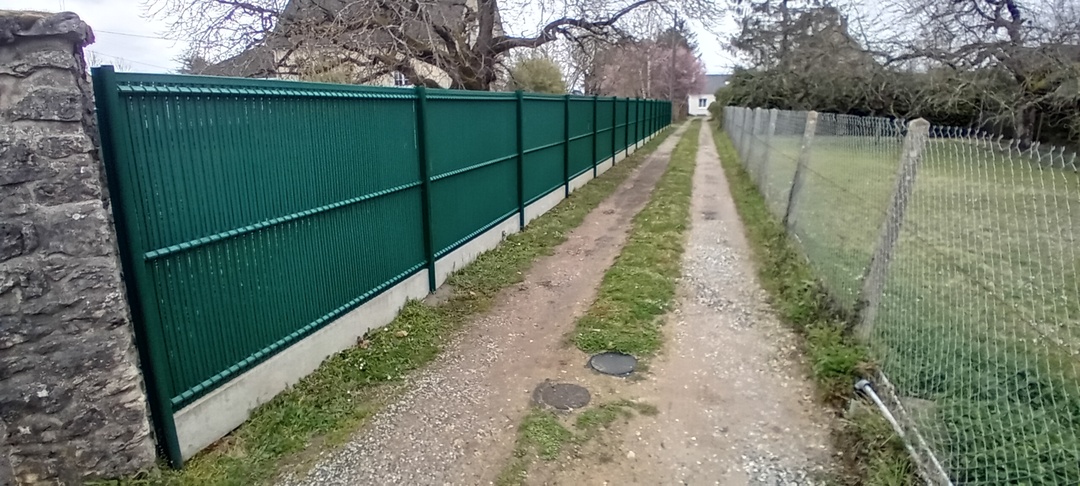Ce projet visait à remplacer une séparation vétuste par une clôture contemporaine et résistante. Le modèle choisi allie performance technique et design épuré. L'installation a été menée de façon méthodique, avec une attention particulière portée à la solidité des fixations. La qualité de la pose garantit une longévité optimale. Le résultat offre au client une délimitation claire et sécurisée de son terrain, tout en apportant une touche esthétique valorisante. Notre entreprise mène régulièrement des chantiers de ce type dans le département.